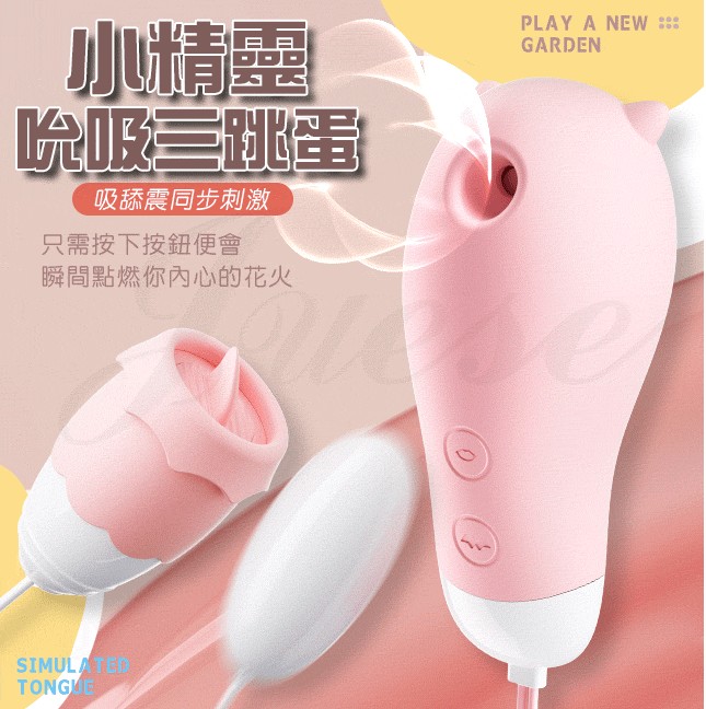 謎姬 MizzZee.小精靈 3種吸吮+10頻震動圓潤小嘴USB充電震舔矽膠三跳蛋